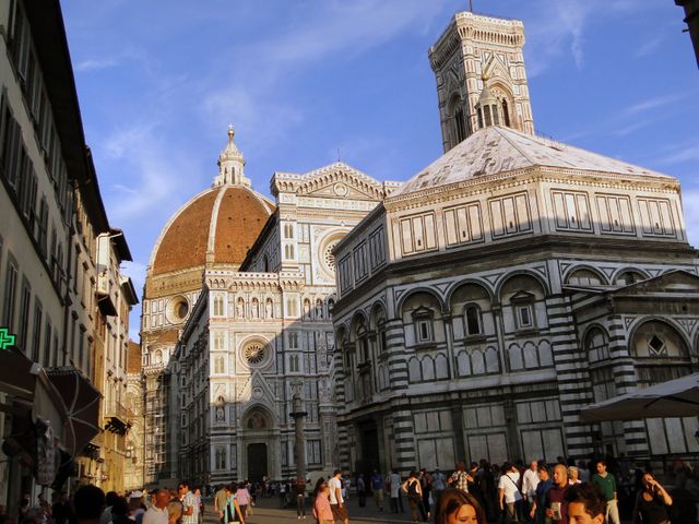 Built on the site of an Etruscan settlement, Florence, the symbol of the Renaissance, rose to economic and cultural pre-eminence under the Medici in the 15th and 16th centuries. Its 600 years of extraordinary artistic activity can be seen above all in the 13th-century cathedral (Santa Maria del Fiore), the Church of Santa Croce, the Uffizi and the Pitti Palace, the work of great masters such as Giotto, Brunelleschi, Botticelli and Michelangelo. © UNESCO World Heritage Centre.