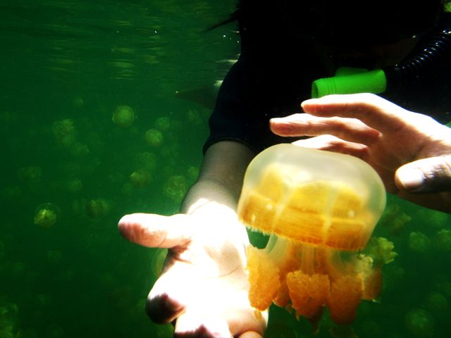 Jellyfish Lake ("Fifth Lake") is a marine lake located on Eil Malk island in Palau. Eil Malk is part of the Rock Islands, a group of small, rocky, mostly uninhabited islands in Palau's Southern Lagoon, between Koror and Peleliu. There are about 70 other marine lakes located throughout the Rock Islands. Millions of golden jellyfish migrate horizontally across the lake daily.